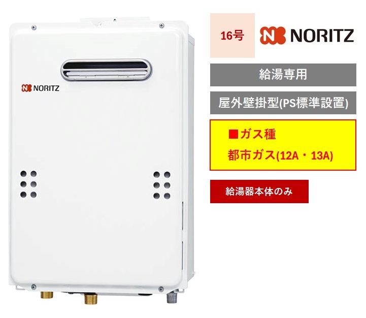 ノーリツ GQ-1639WS-1 16号 都市ガス(12A・13A) ガス給湯器 給湯専用 屋外壁掛け【本体のみ】